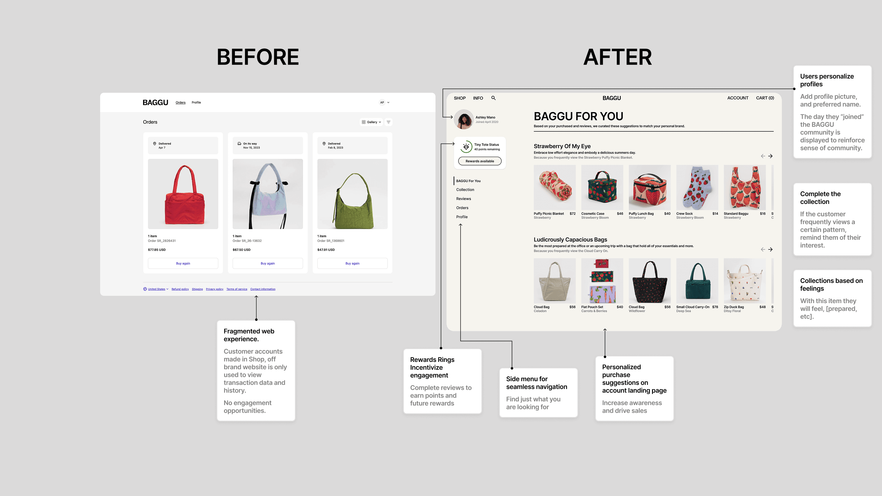 I developed the IA to seamlessly enhance the existing BAGGU digital experience.