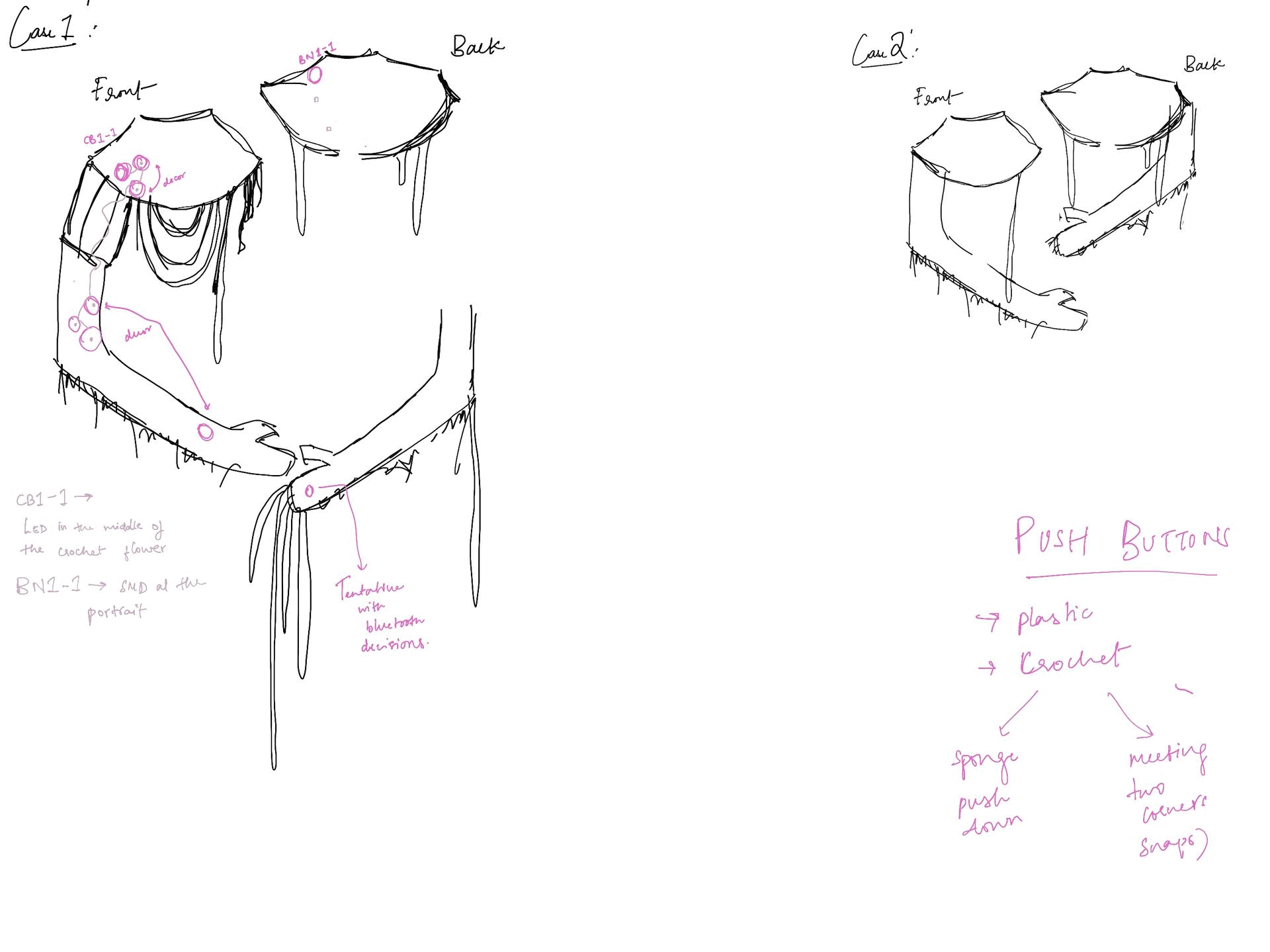 We identified that we needed sensors that captured push, pull, and stroke motions. We created detailed diagrams of the materials and layers. Our independent research involved understanding what types of sensors were needed and how they technically functioned.